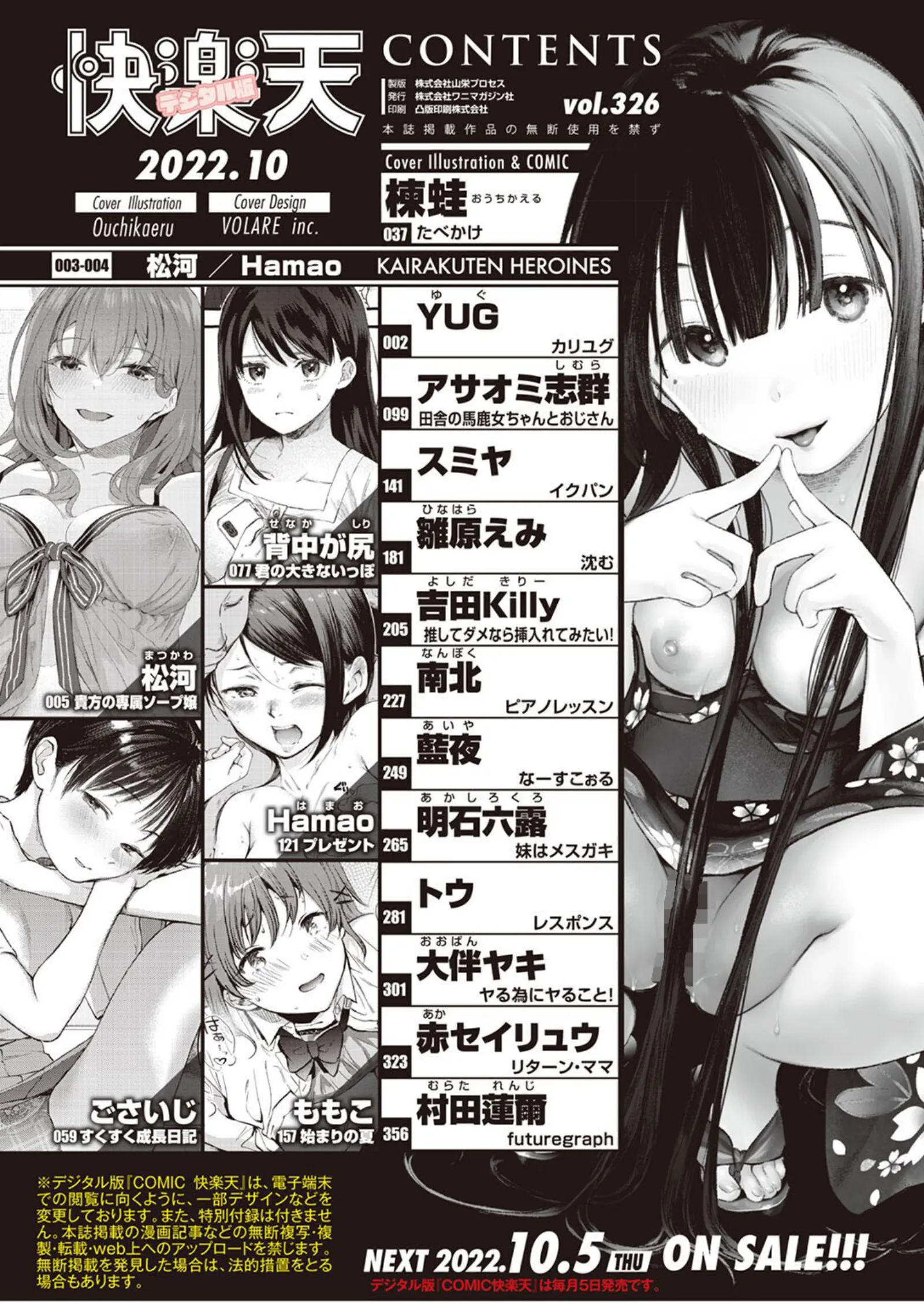1 / 66フル&高画質で読むCOMIC快楽天 2022年10月号作者:楝蛙YUG松河スミヤ村田蓮爾ごさいじももこ背中が尻赤セイリュウHamao大伴ヤキ藍夜明石六露アサオミ志群南北雛原えみ吉田Killyトウジャンル:マンガ誌詳細情報を見る